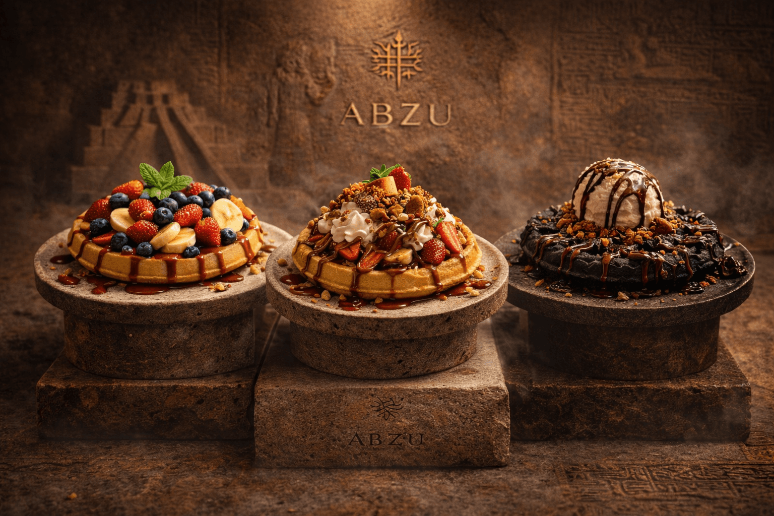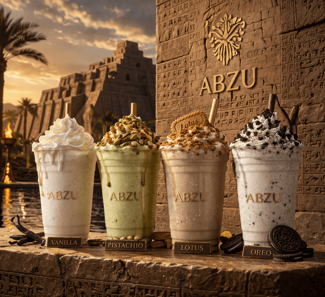 أبـزو مستوحى من الحضارة السومرية، ويعني المياه العذبة العميقة، مصدر الحياة والبداية. هنا نأخذك بتجربة تجمع بين الأصالة والذوق الراقي، لنقدّم لك لحظات مميزة بطعم لا يُنسى.