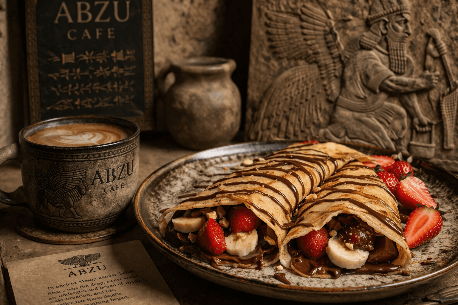 Abzu is inspired by Sumerian civilization and means deep fresh water, the source of life and beginnings. Here, we take you on an experience that combines authenticity and refined taste, offering you unique moments with an unforgettable flavor.